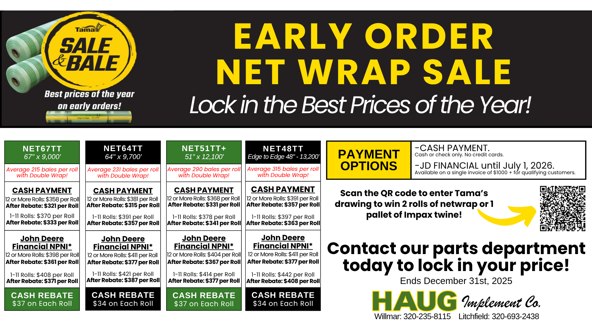 Haug Implement Co., your ALL-MAKES SUPPORT CENTER, understands the importance of keeping your machines up and running. With seven locations to serve you, we have one of the largest parts inventories in the state.