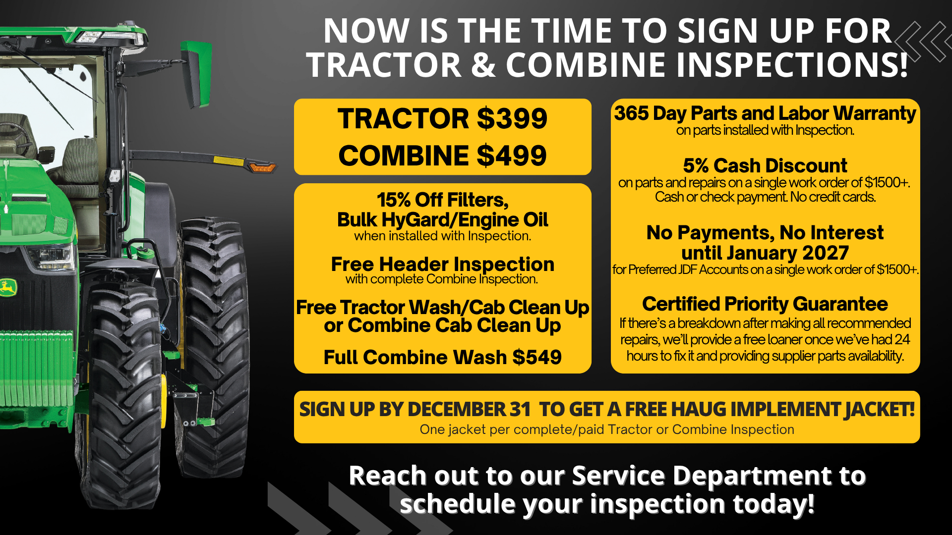 At Haug Implement Co., we are here to provide a comprehensive, all-makes, service solution for managing your Agricultural, Residential, Commercial, and Compact Construction equipment needs.